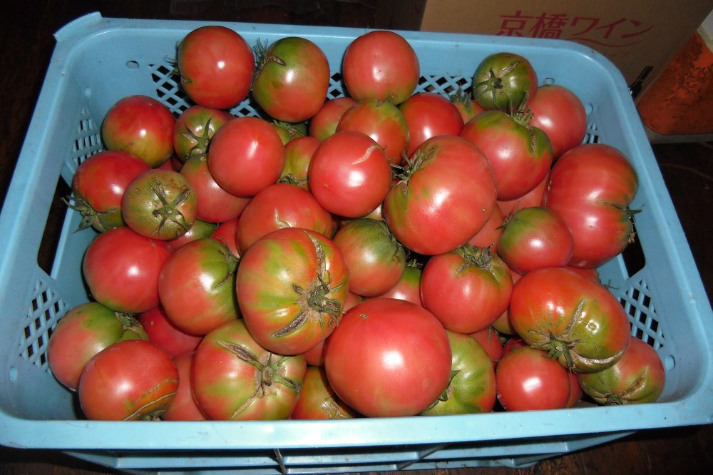 ご近所のペンションコスモスのマミさんから、コンテナ1個分のトマトをいただきました。