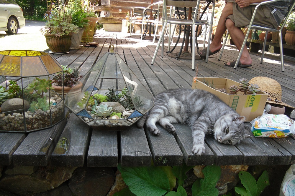 ※完成した寄せ植えの写真を撮っていると、